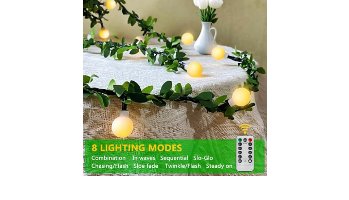 4.8 Modes & Waterproof: Our Vine String Lights have 8 different lighting modes, better than 2 modes vine lights with poor quality battery box. With the IP65 waterproof battery box,these fairy lights battery operated work well anywhere you decorating ,perfect for both indoor and outdoor décor.(Note: Do not immerse the battery box into the water when using outdoor).