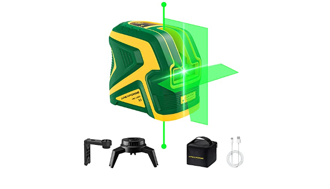 【Bright Green Laser & Outdoor Pulse Mode】This APEXFORGE cross line laser adopts unique green beams, which are twice as bright as red lasers, with a working range up to 131 feet with cross-line accuracy of +/- 1/9 inch at 33 feet, up point accuracy of 1/13 inch at 33 feet and down point accuracy of 1/9 inch at 33 feet. The outdoor pulse mode can be activated by simply pressing the Pulse Mode Button, extending the working range up to 197 feet.