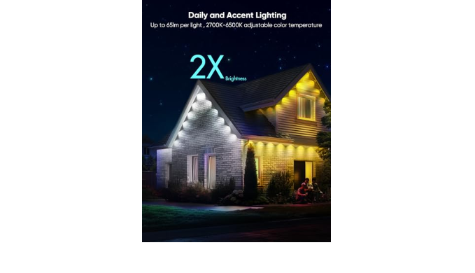 Warm White and Cool White Lighting: The smart eaves lights adds warm and cool white LEDs, designed for daily lighting and accent lighting. Up to 65 lumens per light, color temperatures range from 2700K-6500K and support brightness adjustment.