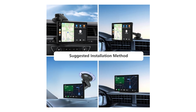 【Easy to Install, set up and use】Plug and play directly with Carplay screen via connect cigarette lighter. This portable carplay screen comes with a self-adhesive bracket and Windshield bracket which can be installed at the smooth surface like the windshield, dashboard etc. You don\\\'t need to disassemble your car\\\'s console, keep your car original radio, perfect coexistence