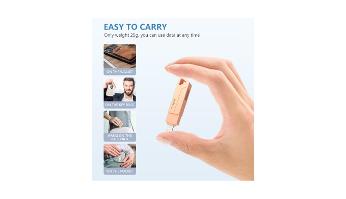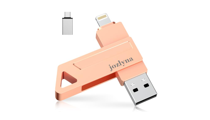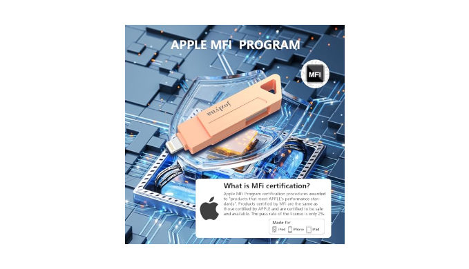 【APPLE MFI CERTIFIED, PLUG AND PLAY】: Mfi Certified flash drive guarantees fast and stable data transfers. Just plug usb flash drive in your iphone, and you\'re ready to roll. Save time, boost efficiency, and relish trouble-free data sharing. Share content on social media directly from your iphone flash drive, all while keeping sensitive files secure.