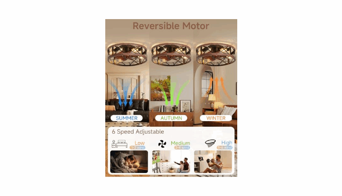【6-speed Wind & Quiet Reversible DC Motor】 AQUBT fandelier ceiling fan with light features 6-speed wind and nature wind pattern, letting you choose your preferred airflow intensity. It is equipped with a noiseless, energy-efficient reversible DC motor that ensures silent operation, and creates a comfortable environment.The dual-direction function delivers downward airflow to cool your space in summer and upward airflow to circulate warm air in winter, providing year-round comfort