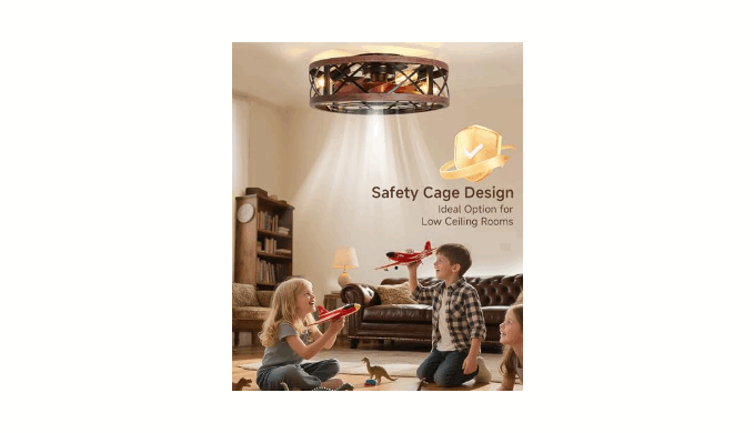 【Special Caged Design】 The vintage caged ceiling fan with light features a rustic wood-like grain design. Its special frame structure ensures safety while enhancing the aesthetic of your home decor. The 7 wood-like grain PC blades provide strong airflow, making it a perfect ceiling fan for bedroom, kitchen, and living room