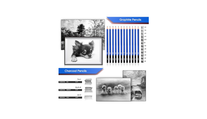 IDEAL GIFTS: Portable packaging and high quality make art set be an ideal election for presents. Different hardness and blackness meet all your requirements for drawing. Suitable for artists, beginners, amateurs, students, high school students, college students, teens, etc.