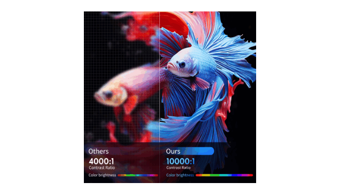 Experience stunning visuals with our portable projector: enjoy crisp 720p resolution and support for 4K video playback, along with an impressive brightness of 200 ANSI 8000 lumens and a superb 10000:1 contrast ratio. With a flexible 16:9/4:3 aspect ratio, it suits all your viewing needs.