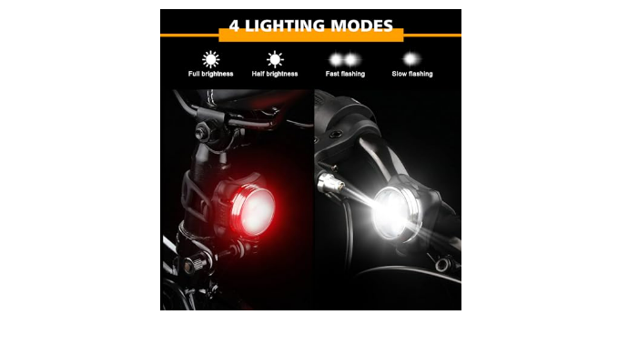 FOUR LIGHT MODE OPTIONS: The Headlight and Taillight feature an one-touch switch with four different lighting modes depending on your preference. Include full brightness, half brightness, fast flashing and slow flashing.