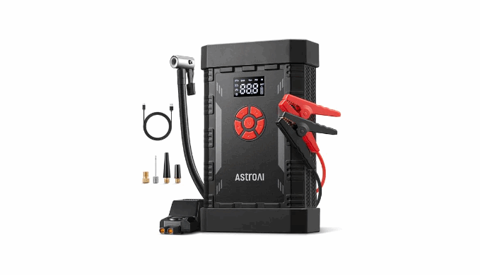 【ALL-IN-ONE EMERGENCY TOOL】The AstroAI A30 Jump Starter is a versatile emergency tool designed to provide peace of mind for drivers. This all-in-one device combines the critical functions of a jump starter, tire inflator, portable power bank, and emergency light. It helps you save space while ensuring you have the essential tools for any emergency during your travels.