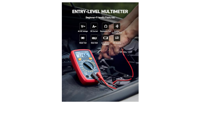 Versatile Digital Multimeter - Accurately measures AC/DC Voltage, DC Current, Resistance, and Diode. This Multimeter is a really useful tool for solving industrial and household electrical issues. Suitable for Household Outlets, Fuses, Batteries (including Vehicles), Automotive Circuit Troubleshooting, Charging Systems, Testing electronics in Cars etc.