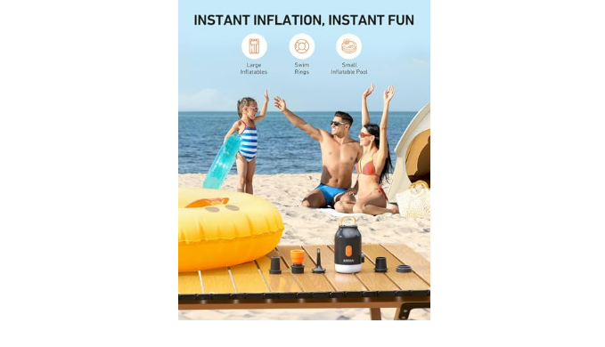 A POCKET-SIZED OUTDOOR MUST: Measuring 2.2*2*3.7 inches and weighing 0.35 pounds, this air pump easily fits in pockets or any other small compartments, making it perfect for camping, beach games, and road trips.