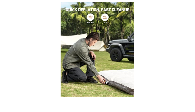 QUICK & LIMITLESS CHARGING: When its 3000mAh battery is fully charged, this air pump can be used for 38 minutes, allowing for near-limitless and worry-free use outdoors. It inflates 14 air mattresses in a row, and deflates 25 storage bags on one battery charge. For best performance, please let it cool off after every 15 minutes of use.