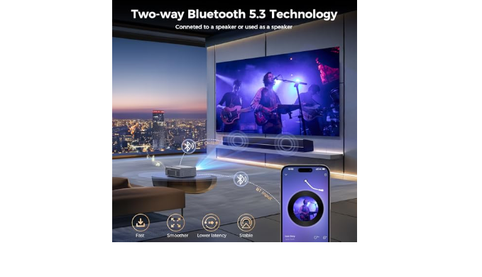 【Enhanced Connectivity|WIFI 6 & Two Ways Bluetooth 】: Featuring dual-band 2.4G/5G WiFi and Bidirectional Bluetooth technology, this tv projector with WiFi and Bluetooth ensures stable connections for streaming your favorite content and sharing presentations, giving you maximum flexibility in how you use your portable projector