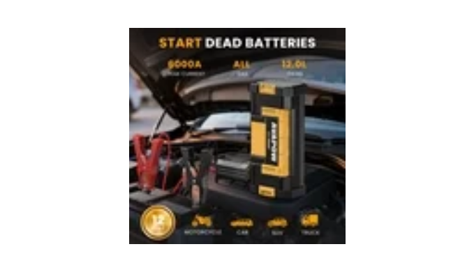 The AVAPOW W68 Car Jump Starter delivers powerful performance with a peak current of 6000A and a high-capacity 32,000mAh battery. Designed for reliability, it can start all 12V gasoline and up to 12L diesel engines, making it suitable for cars, trucks, motorcycles, boats, RVs, tractors, ATVs, UTVs, lawnmowers, and snowmobiles. Compact and portable, this jump starter features intelligent jumper clamps with 8 safety protections, ensuring safe and easy use with clear indicator alerts. More than a jump starter, it also functions as a portable power bank with dual USB output ports (including a fast charging port) and a DC output, keeping your smartphones, tablets, cameras, and other devices powered during travel or emergencies. A built-in LED flashlight with three modes (Lighting, Strobe, SOS) provides additional safety and convenience at night or in roadside situations.