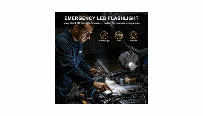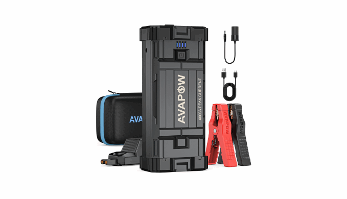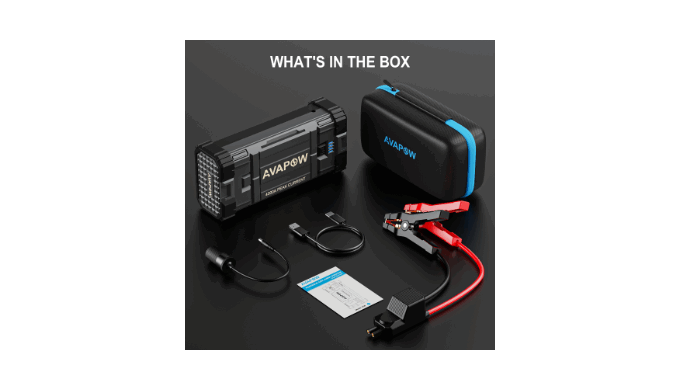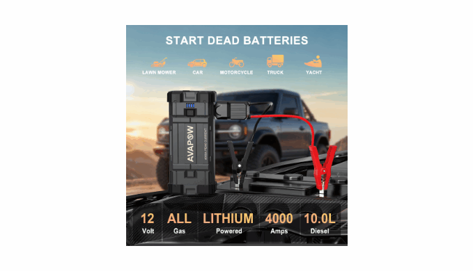 Never get stranded with the AVAPOW 4000A Car Jump Starter – your reliable companion for roadside emergencies and everyday use. With up to 4000A peak current, this jump starter can quickly power all 12V vehicles (all Gas and up to 10L Diesel engines), including cars, trucks, motorcycles, ATVs. On a full charge, it delivers up to 60 jump starts on a full charge, making it a dependable tool for any vehicle owner. Safety is a priority with intelligent protection features, including safeguards against short circuits, reverse polarity, overheating, and low voltage. Clear indicator lights and audible alerts guide you to operate safely. More than a jump starter, it doubles as a high-capacity power bank, featuring dual USB fast-charging ports compatible with phones, tablets, cameras, and other electric devices. The multi-function LED flashlight with Steady, Strobe, and SOS modes provides extra security for night emergencies, camping trips.