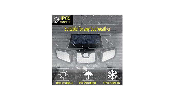 【IP65 Waterproof】Durable ABS material ensure the 3 Head Motion Sensor Lights great waterproof ability to withstand any bad weather and great heat dissipation to help the solar panel have over 60,000 hours lifespans, producing up to 3000LM 6500K high brightness output.