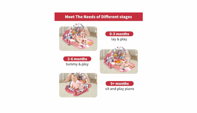 【6-in-1 Baby Play Gym Mat】Designed for 0-12 month babies, this 6-mode baby activity gym adapts to every milestone: lying down, tummy time, sitting, kicking, crawling, and detachable on-the-go play. The adjustable arches grow with your baby while strengthening motor skills and coordination.