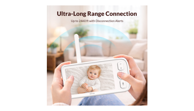 This video baby monitor supports four flexible installation methods to suit different crib setups. The 5-inch screen ensures stable monitoring with a range of up to 2460 ft in open areas. Receive instant alerts when your baby needs attention, and use convenient features like feeding reminders or soothing lullabies for added comfort.
