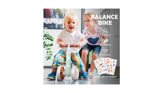 Three Free Cartoon Stickers: To add a personalized touch to the baby bike, we\\\'re including three adorable cartoon stickers. Let your baby choose and place these stickers, making their balance bike 1 year old uniquely theirs. It\\\'s a creative way to engage with the balance bike and encourage imaginative play