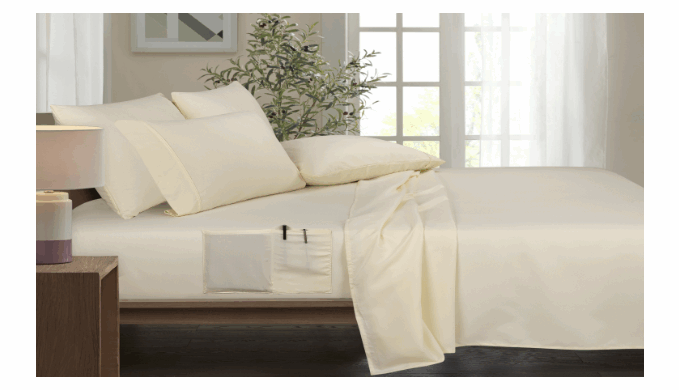 Bamboo Smart Pocket 4 or 6 Piece 1800 Thread Count Sheet Set-Mother’s Day Gift! Queen Ivory (6-Piece)