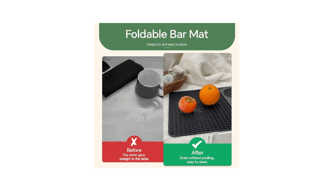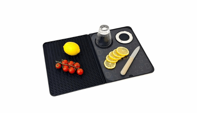MULTIFUNCTIONAL PROFESSIONAL BAR MAT - Silicone bar mat can be used for cutting fruit, garnishing glasses, mixing and pouring cocktails, this 3-in-1 drip mat protects your countertop and provides a designated cocktail prep area.