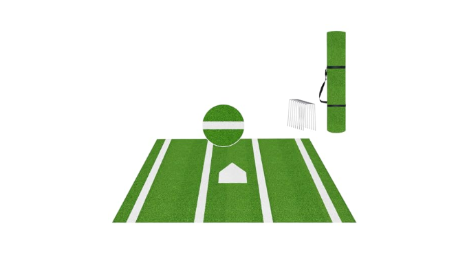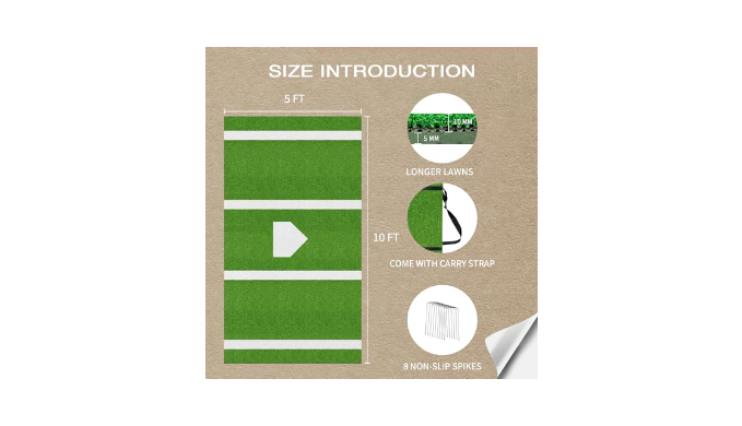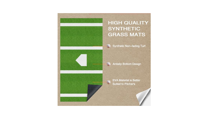 【Non-Slip And Anti-Fade】Our baseball turf mat are made of new synthetic turf, which is 100% UV resistant turf, with a 5mm non-slip backing to provide perfect traction for the hitter and ensure stability when you hit the ball; while any lines on the baseball batting cage mat cushion are inlaid so that they won\'t fade, break, or flake off, even in harsh outdoor conditions. Note: Due to different shooting conditions may appear figure and the actual slight color difference, please do not mind.