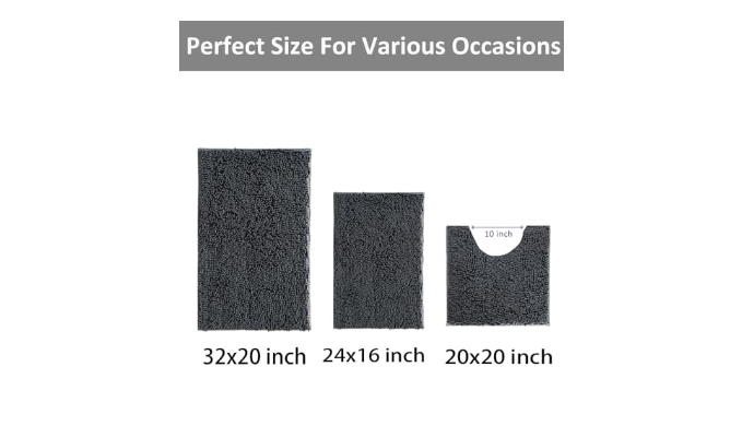 ♔【Perfect 3 Pieces Chenille Bathroom Rugs】Our bathroom rug set include 1 Small Bath Rug 16\\\"x24\\\", 1 U-Shape bath mat 20\\\"x20\\\", 1 Large Bathroom mat20\\\"x32\\\". The three different size perfect fit your hotel, sauna, shower, gym for bathroom, bedroom, dining room, living room, and so on. allows you to step on the soft carpet in the bathroom without touching the cold ground.suitable for indoors/outdoors