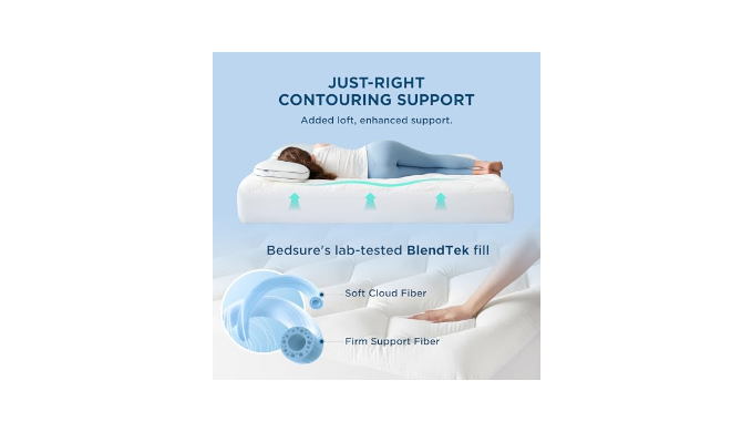 Just-Right Support: The Bedsure BlendTek fill perfectly blends firm and soft fibers to offer substantial support with a touch of airy fluffiness. The extra loft adds thickness and softness, turning your bare dorm into a cloud-like sleep haven from queen mattress pad