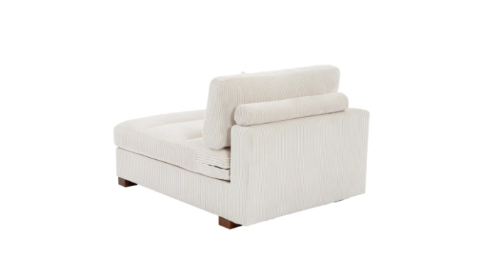 Relax in modern style with this 56” chaise lounge. Offering seating for two it features a contemporary armchair-inspired silhouette balanced on block feet. It’s upholstered in soft corduroy fabric with a solid hue and channel tufting for a tailored look that’s right at home in refined aesthetics. With its solid wood frame and recessed arms, its foam filling and sinuous springs provide a weight capacity of 400 lbs. Plus, the cushions are reversible and removable, making it easy to maintain. Add a favorite blanket for a touch of color.