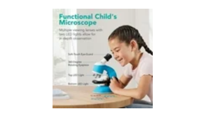- FUNCTIONAL CHILD’S MICROSCOPE: Easy-to-use features, including a soft-touch eye-guard, 360-degree rotating eyepiece, and two directional LED illumination to view transparent and opaque surfaces, make this a must-have for any budding scientist