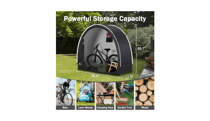【Practical & Portable】Measuring 78.7 x 31.5 x 65.7 inches, this tent can hold 2-3 bicycles. It’s also perfect for storing gardening tools, lawn mowers, and other outdoor equipment, keeping your garden tidy. Whether at home or on a camping trip, this storage shed provides a safe, dry space for your belongings.