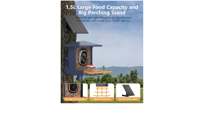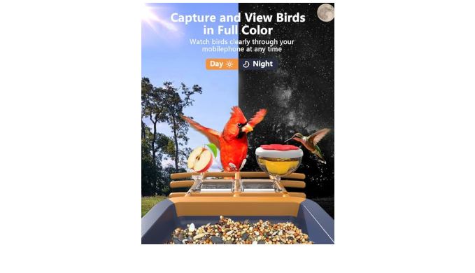 【2K HD Specially designed for observing and feeding birds】Mysight motion activated bird camera feeder, equipped with a 140 ° wide-angle lens and 2K pixels, can clearly observe various visiting birds during the day and night. Built in 3x magnification function, capturing bird details up close. Equipped with a 1.5L large bird feeder, no need to frequently replenish bird food, IP65 waterproof performance can keep bird food dry without worrying about moisture.