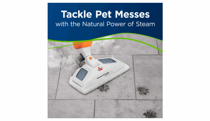 The BISSELL®PowerFresh®Pet Lift-Off® Steam Cleaner gives you a more versatile, natural steam cleaning of your home on a wide range of surfaces. When use as directed, it eliminates 99.9% of germs and bacteria using only water and the washable pad for a natural clean. The removable handheld steamer and 13 specialized tools allow you to clean surfaces above your floors, including counters, sinks, grout, and windows. The exclusive flip-down EasyScrubber™ on this pet steam cleaner makes it easy to remove tough, sticky pet messes from your floors. Scent discs help to remove pet odors while you clean and leave behind a delightful scent.