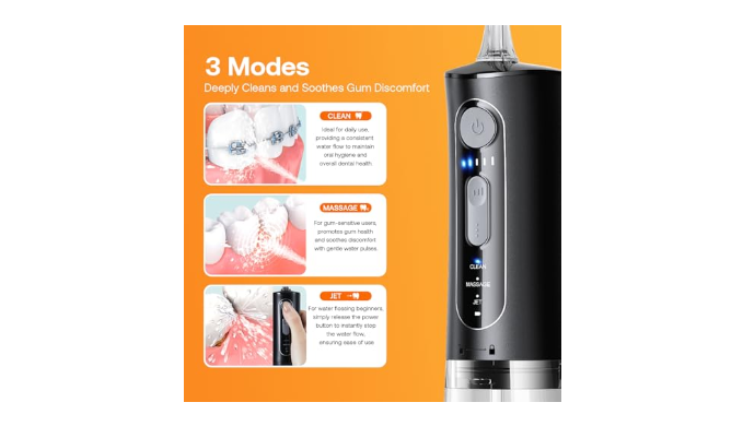 Wide Mouth Reservoir Easy to Clean:Keeping your Water Dental Flosser clean is just as important as keeping mouth clean. Its detachable and wide-mouth design renders it easy to clean and refill, ensuring optimal hygiene