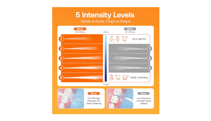 Cleaning Options for Comprehensive Oral Care: Featuring 3 modes and 5 intensity settings, our product caters to gentle, sensitive cleaning or deep, powerful cleansing for a personalized experience, promoting gum health, fresh breath, and bright smiles