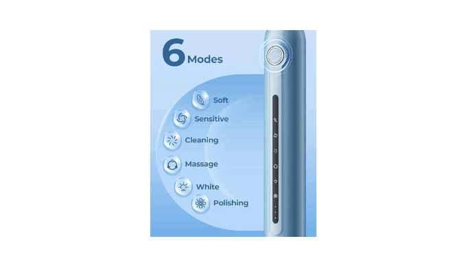 6 HIGH-PERFORMANCE BRUSHING MODES :Soft, sensitive, clean, massage, whiten, polish, the electric toothbrush has 6 intelligent gears and 6 professional level intelligent unlocking solutions, suitable for different people, different periods, and different states, providing precise solutions. Soft bristles nourish and massage the gums, achieving deep cleaning.