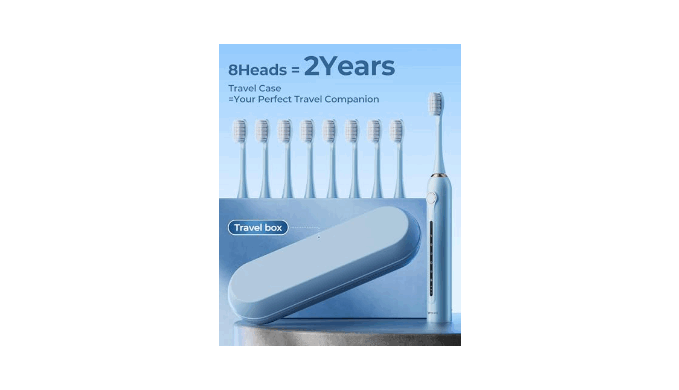 8 REPLACEMENT BRUSH HEAD :the customized whitening brush head of the toothbrush is suitable for the tooth radian, covering the tooth surface in three dimensions, the micromolecule foam penetrates into the teeth, and the high-frequency vibration cleans the teeth accurately. Each brush head can be used for 3 months, so 8 brush heads can be used for approximately 24 months.