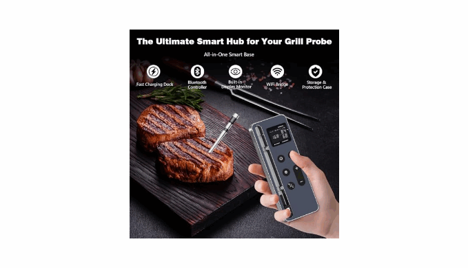 Smart Display Base – No App Needed:Enjoy real-time temperature monitoring and easy control with our smart display base. Set target temps directly on the screen—no phone or app required. With a one-click setup, just connect the probe, pair, and start grilling in seconds. Simple. Fast. Hassle-free.