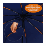 SIMPLICITY AND DURABILITY: Our compact travel umbrella features a balance of simplicity and durability with its unique double 10-rib patent design. It opens and looks simply while remaining sturdy and durable, capable of withstanding strong winds, furthermore, which has an integrated rubberized non slip handle for better grip when encountering strong winds and heavy rains.
