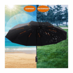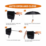 WINDPROOF: The umbrella\'s windproof mechanism can protect you from strong winds and effectively protect the umbrella. Windproof means that the umbrella should always face the direction of the wind. If the umbrella is not against the wind direction sometimes, the umbrella\'s canopy can reverse, but you can press the switch button to close the umbrella and reopen it, and the windproof mechanism can prevent damage. Inverted umbrellas and other umbrellas lack this kind of windproof mechanism, which will be completely damaged once strong winds cause their canopy to flip.