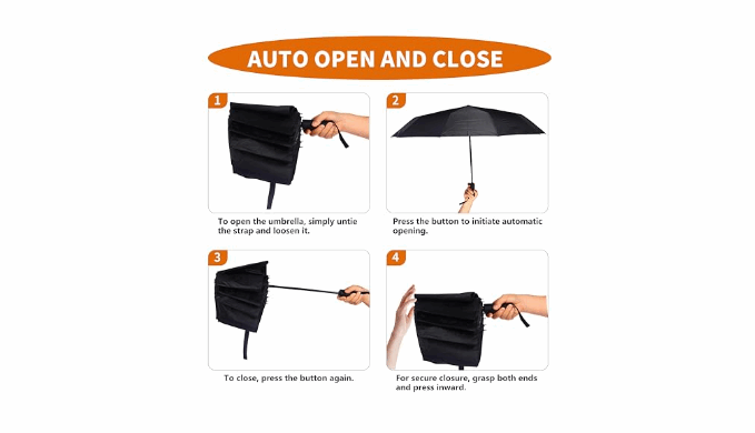 AUTOMATIC OPEN AND CLOSE: The umbrella is designed for easy automatic open and close functionality at the press of a button. No more dealing with the hassle of manual umbrellas, get coverage promptly. The umbrella is great for men and requires some strength for women since it needs some muscles to push the umbrella back and close it.