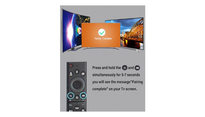 4.[About Pairing] - Easily pair, hold down the Back/exit and play/Pause buttons for 5-8 seconds at the same time, and you will see a \"pairing complete\" message on your TV screen. (If pairing fails, repeat this step)