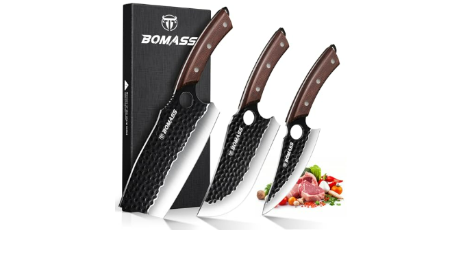 【Multifunctional Butcher Knives Set】 The Cleaver Knife Set Include: 6.1\" Viking Knife, 7.5\" Japanese Cleaver Knife, 7.4\" Serbian Chef Knife. A versatile chef knife set can handle everything from cutting vegetables, fruits, and meat to slicing through bones and fish. Our meat cleaver is perfect for various settings, including home kitchens, restaurants, markets, outdoor BBQs, camping trips, hiking, cooking classes, and even boat kitchens. It meets all your needs in any situation.