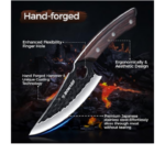 【Premium Steel Japanese Knife】 Our hand-forged Japanese knife set is crafted with exceptional precision, giving it unique resistance to corrosion. Renowned for its superior sharpness and durability, this high-quality boning knife maintains its edge for an extended period, allowing for precise and smooth cutting. To keep the hunting knife set in optimal condition and prevent rusting over time, we recommend hand washing and drying it thoroughly with a clean cloth.