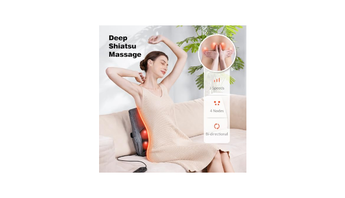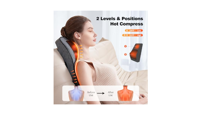 【Upgraded Neck and Back Massager】Larger size: 15*13 inches, 6 inches longer than ordinary massage pillows. Perfectly fits the neck and back curves to provide most comfortable massage experience. 2 heating positions with 2 heating levels. 3 adjustable intensities, all controlled by a convenient remote.