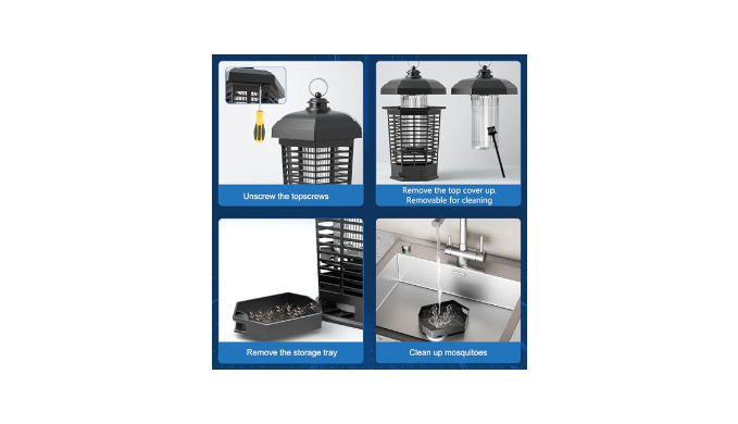 Strong Electric Bug Zapper: The electric bug zapper covers 1200 square feet to attract mosquitoes, flies, moths, and other pests by the replaceable 20W bulb. Traps and eliminates mosquitoes, flies, wasps, and gnats with 4200V instant zap technology, kill flying pests and mosquitoes with our advanced bug zapper, providing you and your family a comfortable pest-free environment for working and sleeping.