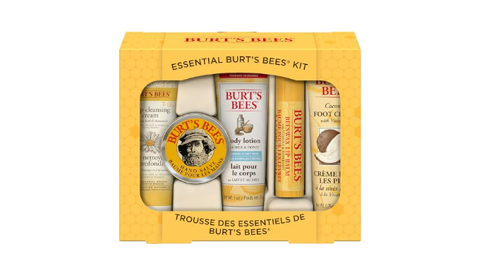 SKIN CARE PRODUCTS: Pamper from head to toe with this giftable set including 5 travel size Burt\'s Bees favorites: Soap Bark and Chamomile Deep Cleansing Cream, Hand Salve, Milk & Honey Body Lotion, Coconut Foot Cream and Beeswax Lip Balm; Package may vary
