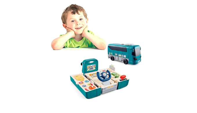 There are many ways to play with this bus toy. It can be played as a school bus, which can glide a distance with a light push. On the other hand, expand it can be switched to the driving mode and it contains a simulated steering wheel, traffic card, gear shifter, calling machine, etc. All realistic details design allowing children to experience more gameplay.
