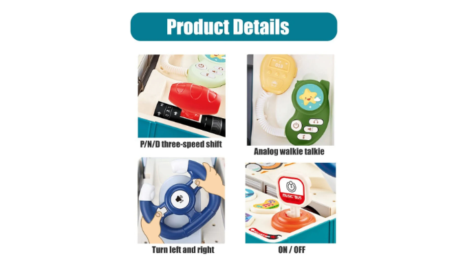 - Interesting Music and light: There are 4 buttons and each button has different content and sound effect. Like pressing the button on the steering wheel, you will see the light and hear the realistic sound of turning or horning. And the bus contains early education knowledge suitable for children so that children can learn with the musical bus. Contains safety tips, story enlightenment, music, and nursery rhymes.