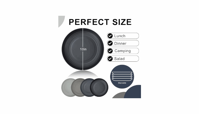 【Wide Applications】 The lightweight and durable dinner plates are suitable for serving meals, pasta, bread, dessert, salad, etc. These plates are not only suitable for home but also for parties, camping, picnic, etc. If you have any questions with our kids plates, feel free to let us know and we will try our best to help you.