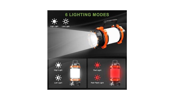 Ultra Bright and Versatile Lighting: The camping lantern offers up to 1000 lumens and 360° illumination; With 6 lighting modes, including the red emergency light, the camping light is perfect for camping, power outages, or emergencies; Light up any space, anytime