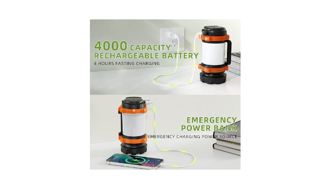 USB Rechargeable: 4000mAh camp lantern charge your phones, radios, or GPS devices on the go; Keep you in touch in wild; Perfect for camping, hiking and adventure